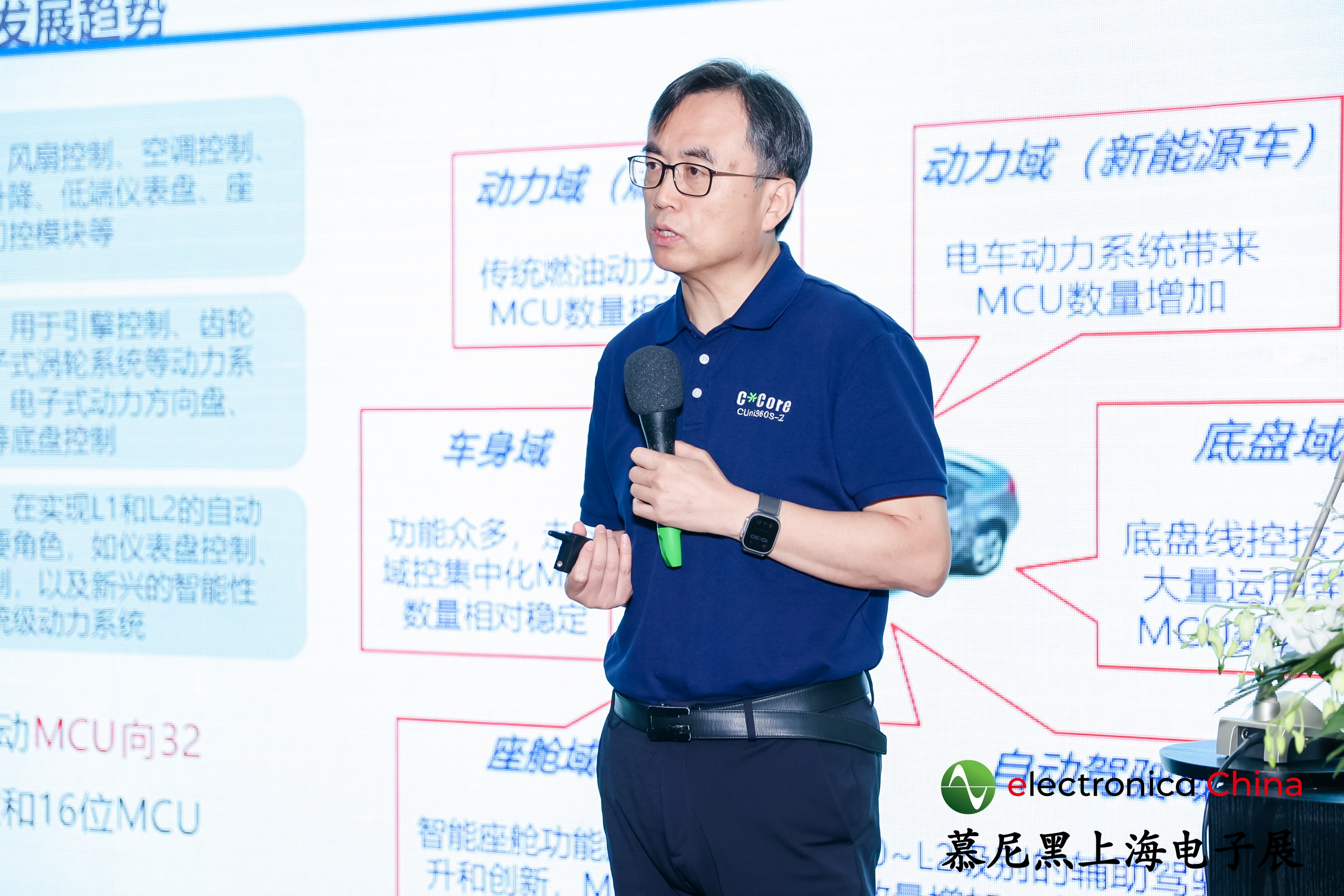 炎炎夏日,慕尼黑上海電子展進入第二天,現(xiàn)場參展觀眾熱情依舊不減,國芯科技展臺前人潮涌動,大家紛紛駐足參觀,科技創(chuàng)新的火花在此碰撞。未來就是現(xiàn)在,“芯片國產化之光“照亮我們前行之路,一步一個腳印,國芯科技作為汽車芯片領域的攀登者,在本次展會上通過芯片以及合作客戶的方案展示、技術分享會、論壇演講等多種形式與眾多合作者一起共同探索芯片國產化的新路徑。今天的技術分享會“多核MCU芯片動力底盤域的解決方案”,則向與會者更加清晰地展示了其在汽車動力底盤芯片領域的進展與前瞻布局。