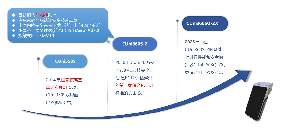 其次,金融POS終端產(chǎn)品線成熟可靠。公司研發(fā)的金融POS終端安全芯片產(chǎn)品群包括CUni360S-Z、CCM4202S、CCM4202S-EL、CCM4208S以及剛剛研發(fā)成功的CUni360SQ-ZX等多款產(chǎn)品,廣泛應(yīng)用于智能POS、傳統(tǒng)POS、電簽POS、mPOS等產(chǎn)品中。上述芯片累計(jì)出貨超過1億顆,深耕POS行業(yè),推陳出新,金融POS產(chǎn)品不斷創(chuàng)造佳績,國芯科技已成為行業(yè)主流芯片供應(yīng)商。