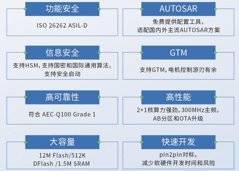 公司成功研發(fā)的汽車電子MCU新產(chǎn)品CCFC3007PT是基于公司自主PowerPC架構(gòu)C*Core CPU內(nèi)核研發(fā)的新一代適用于汽車電子動(dòng)力總成、底盤控制器、動(dòng)力電池控制器以及高集成度域控制器等應(yīng)用的多核MCU芯片,是基于客戶更高算力、更高信息安全等級和更高功能安全等級應(yīng)用需求而開發(fā)的全新多核架構(gòu)芯片。