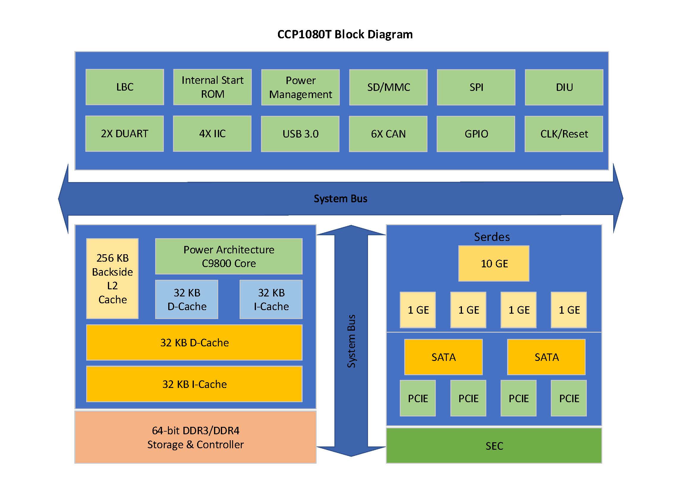 The CCP1080T chip is a new generation of high-performance and high-security edge computing chip based on C*Core’s 64-bit PowerPC architecture CPU core. C9800 is high-performance dual-core with operating frequency up to 1.8GHz under normal conditions and a Dhrystone performance of 3.1DMIPS/Mhz.